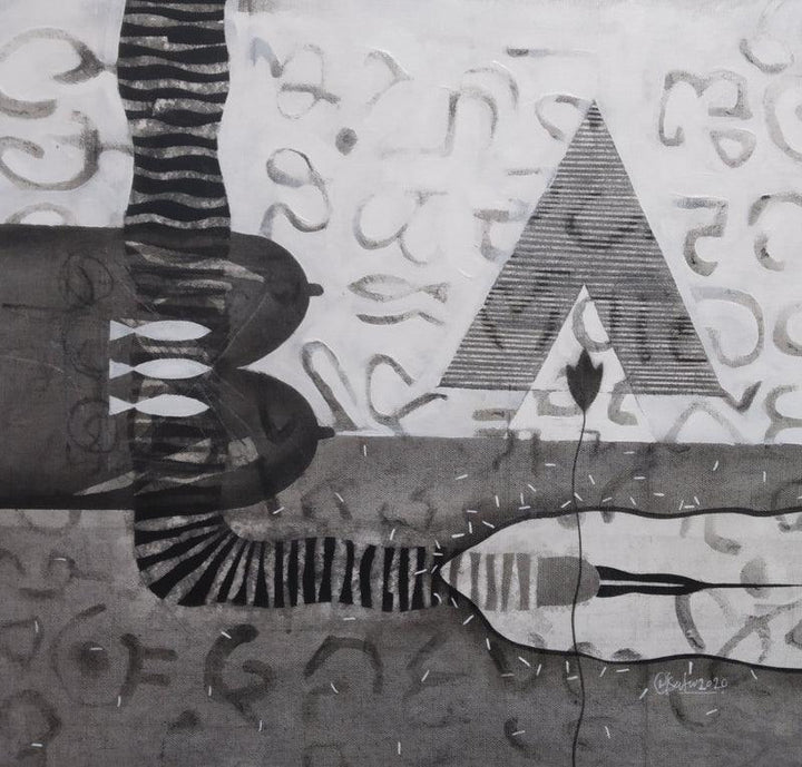 Abstract charcoal painting titled 'Untitled 124', 18x18 inches, by artist Narendra Jatav on Canvas
