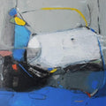 This minimalist artwork showcases Apet's ability to convey emotion through a restrained palette and carefully placed forms. The vast expanse of blue creates a sense of peace and stillness, while the contrasting white and yellow elements add a touch of dynamism. The subtle textures and brushstrokes invite the viewer to contemplate the quiet beauty of the composition.