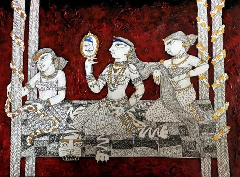 Untitled (A Royal Gathering) Acrylic Ink Figurative Painting