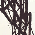 This abstract painting features a dynamic interplay of black lines against a stark white background. The lines intersect and overlap, creating a sense of depth and movement. The composition evokes a sense of energy and exploration, suggesting a journey or a path through an abstract landscape. The contrast between the bold black lines and the white background creates a striking visual impact.