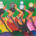 This vibrant painting by Kappari Kishan captures the essence of rural Indian life, showcasing a group of village girls walking in a row, each balancing pots on their heads. The artist's use of bold colors and dynamic lines brings the scene to life, portraying the strength, grace, and resilience of these women. The artwork is a celebration of their daily lives and the rich cultural traditions they represent.