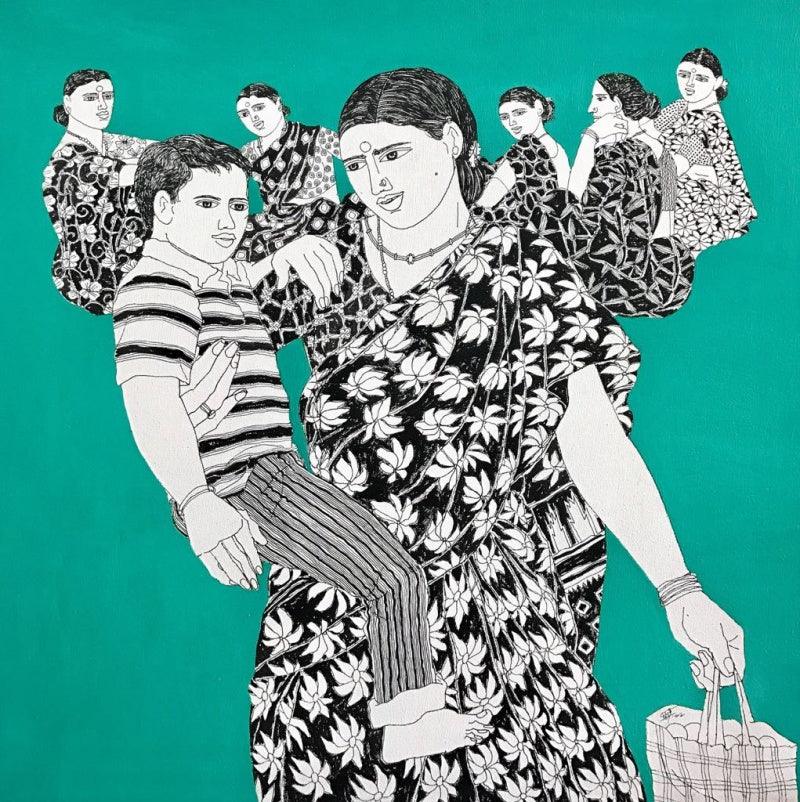 This sophisticated original painting is intricately worked with superior technique. Created by the talented artist Laxman Aelay, this piece brings joy and serenity and transforms any space with its sophisticated presence. Perfect for collectors and art enthusiasts who appreciate authentic artistic excellence.