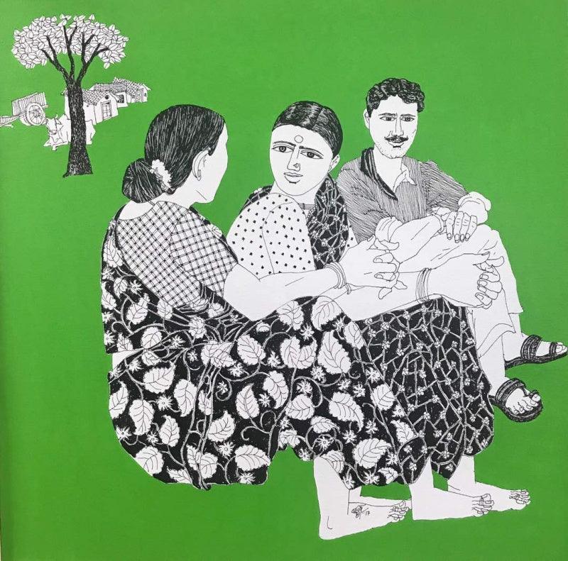 Figurative acrylic painting titled 'Village Scene 18', 24x24 inches, by artist Laxman Aelay on Canvas