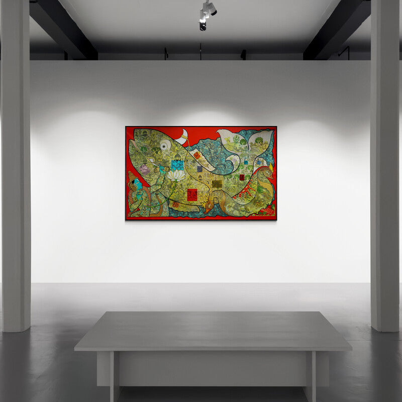 Vishnu With Matsya Avatar (Matsya Avatar: The Cosmic Fish) Acrylic Religious Painting