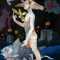 A surreal and dreamlike mixed media artwork by Anjolie Ela Menon depicting a figure walking through a fantastical landscape. The figure is adorned with a variety of organic and mechanical elements, creating a sense of wonder and the unknown. The artwork invites viewers to explore the depths of their own subconscious.